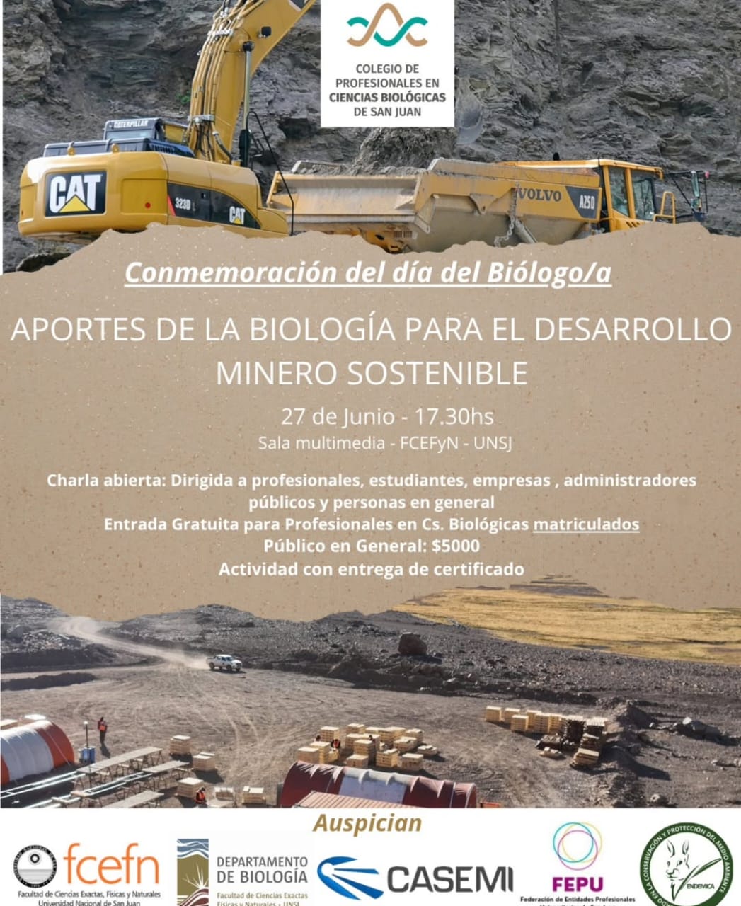 Con motivo de conmemorar el Día del Biólogo, se realizará un debate interdisciplinario para analizar el rol de la biología en el desarrollo minero sostenible en San Juan. La actividad tendrá lugar el viernes 27 de junio a las 17:30 en la Sala multimedia de la Facultad de Ciencias Exactas, Físicas y Naturales de la UNSJ.
