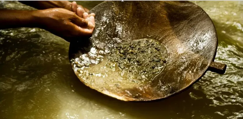 El platón o batea es símbolo de la MAPE Informalidad Mercurio Iberoamérica. ASGMI promueve técnicas de bajo costo para reemplazar estos métodos rudimentarios.