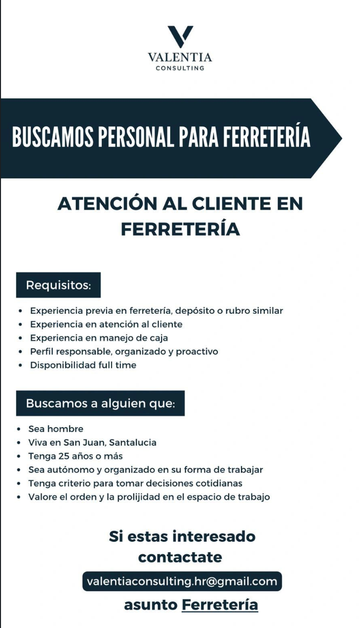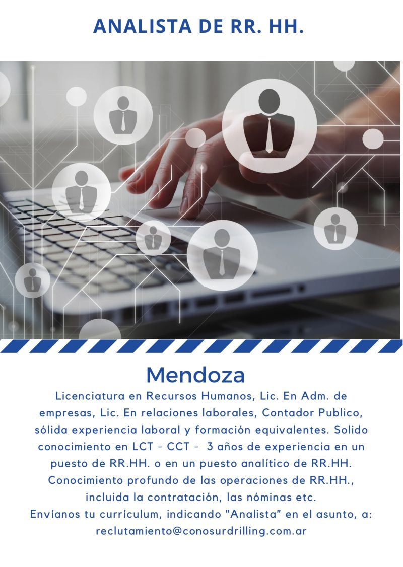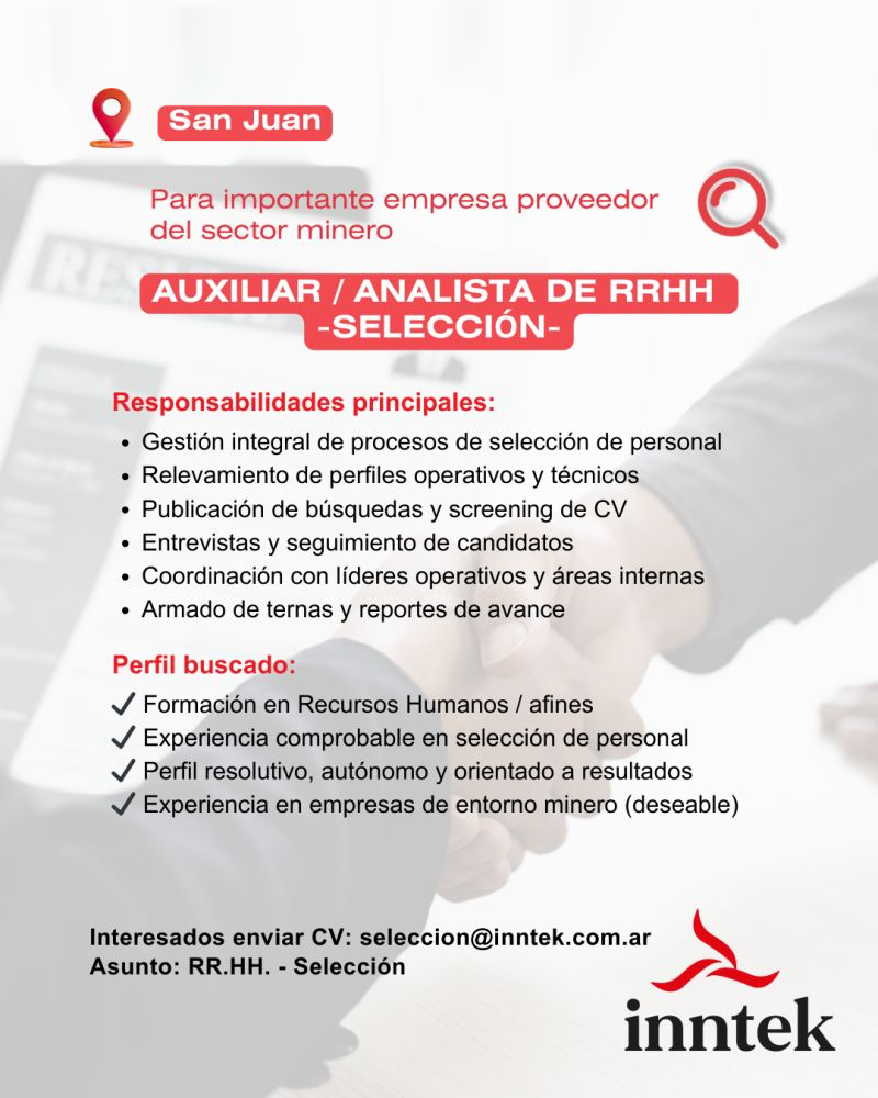 Postulate enviando tu CV a [email protected], indicando en el asunto: RRHH – Selección.