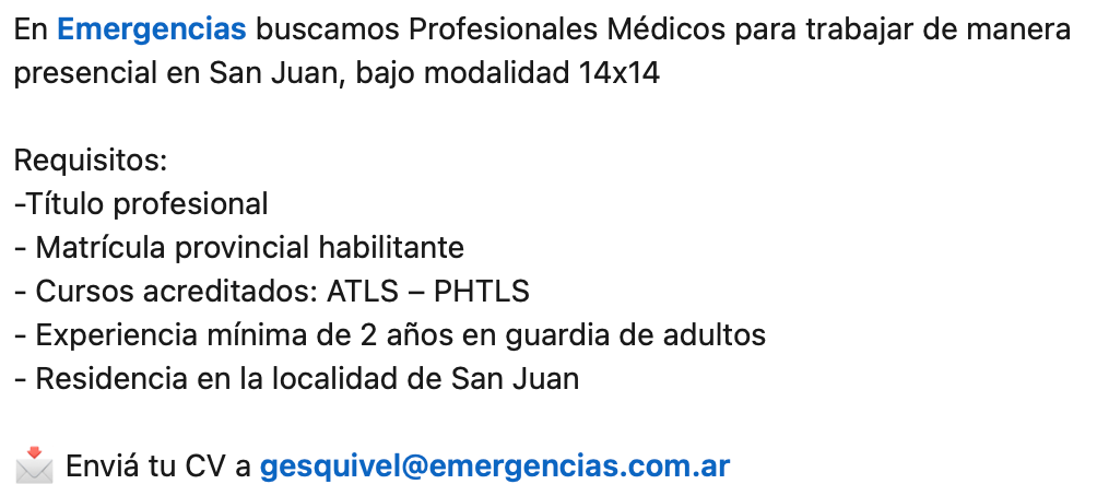 Mandá tu CV a: [email protected]