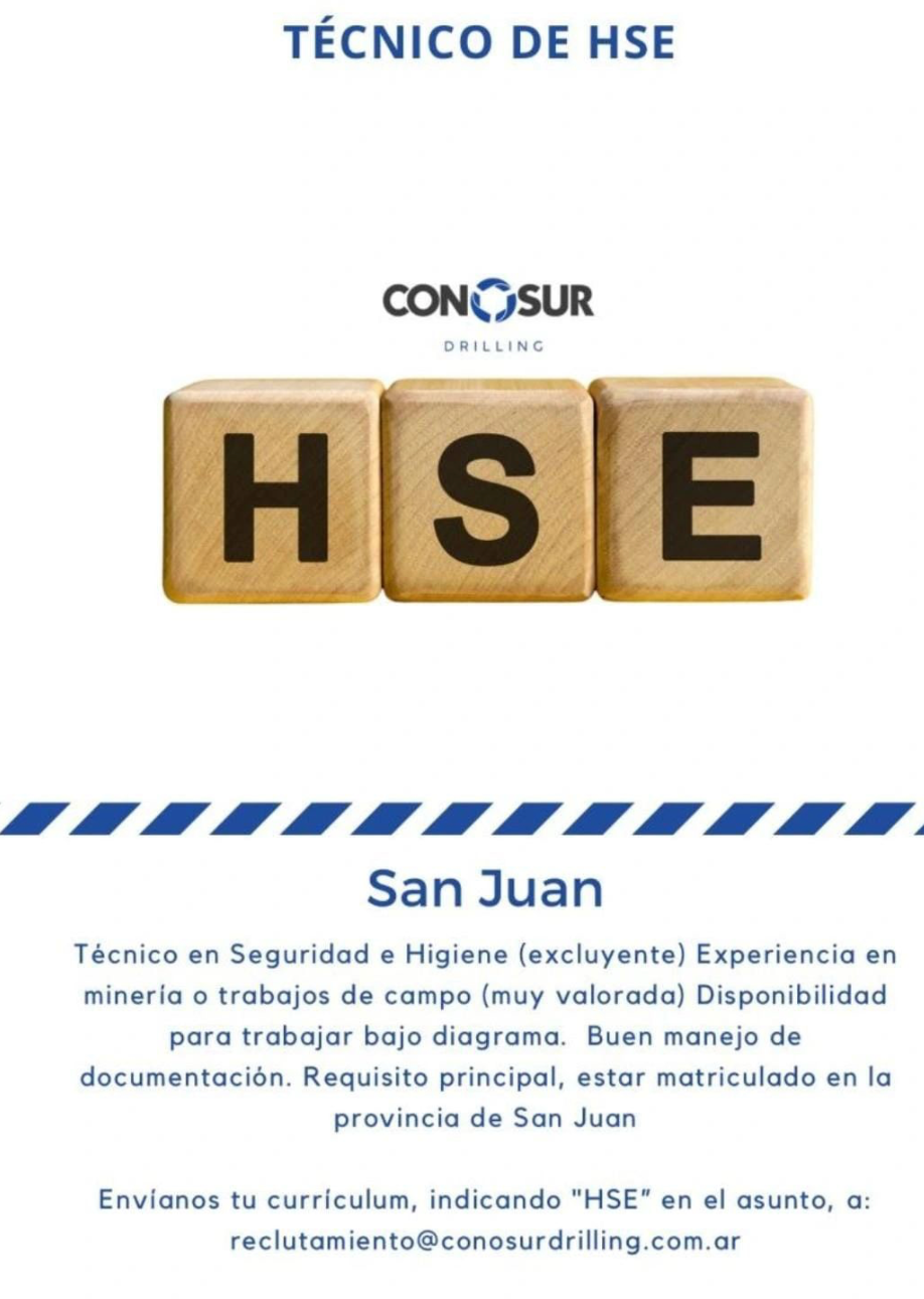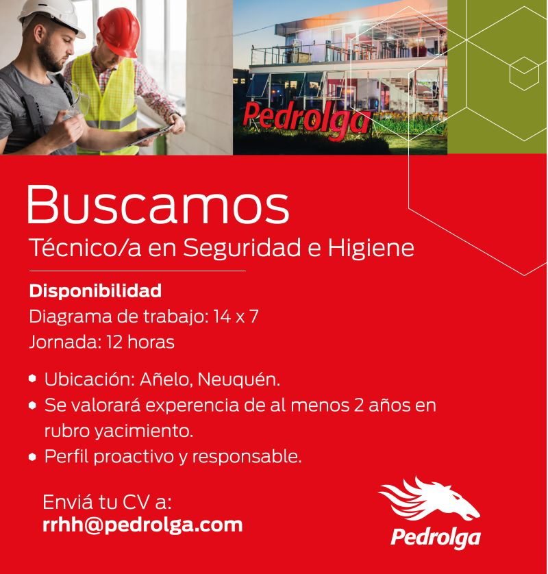 Indicar en el asunto del mail el puesto al que te postulás: “Técnico/a en Higiene y Seguridad – Añelo”