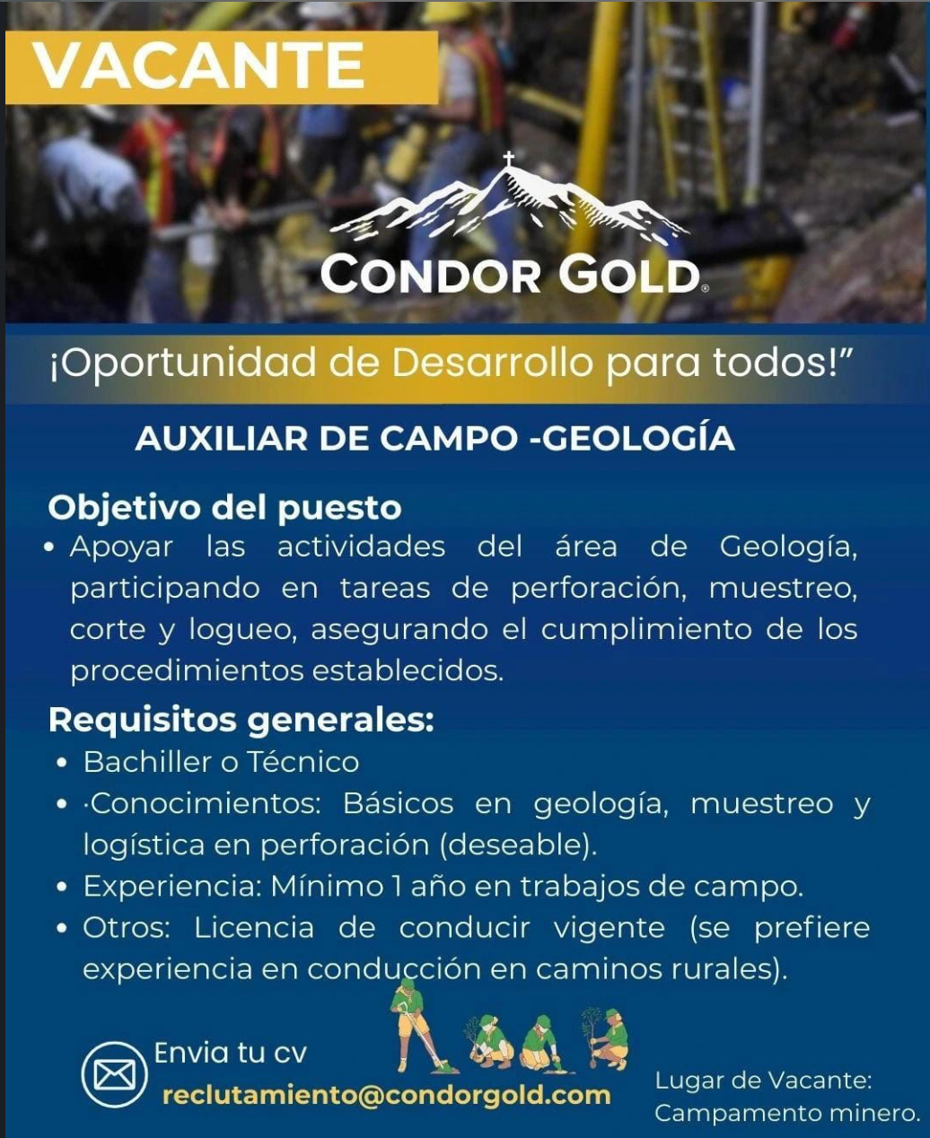 Al menos 2 años de experiencia comprobable en el rubro hashtagyacimiento. y experiencia en trabajo de campo.