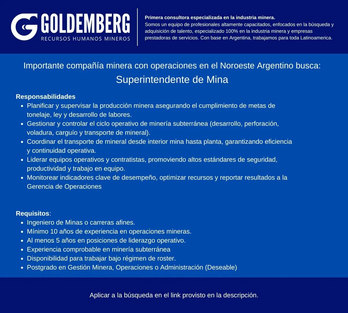 Compartimos algunas vacantes activas en la industria minera para dar visibilidad a oportunidades del sector: