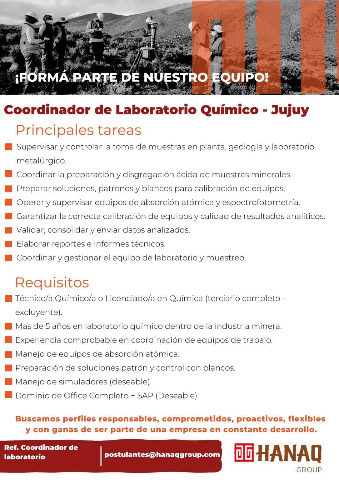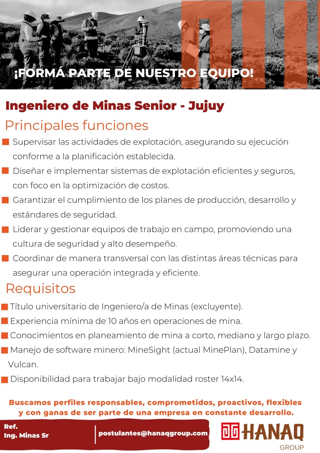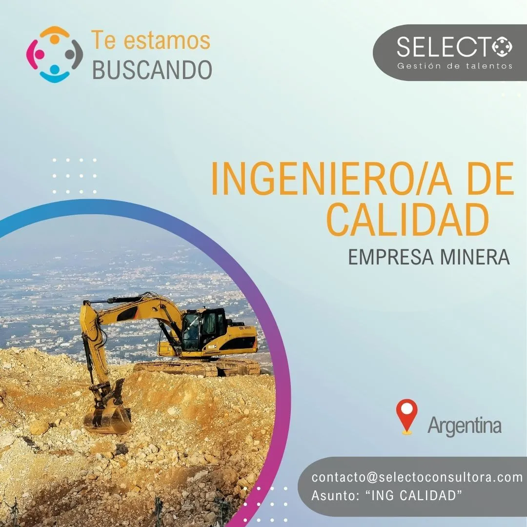 Selecto – Ingeniero/a de Calidad | Modalidad Roster, para operación minera en etapa productiva. [email protected] – Asunto: Ing. de Calidad.