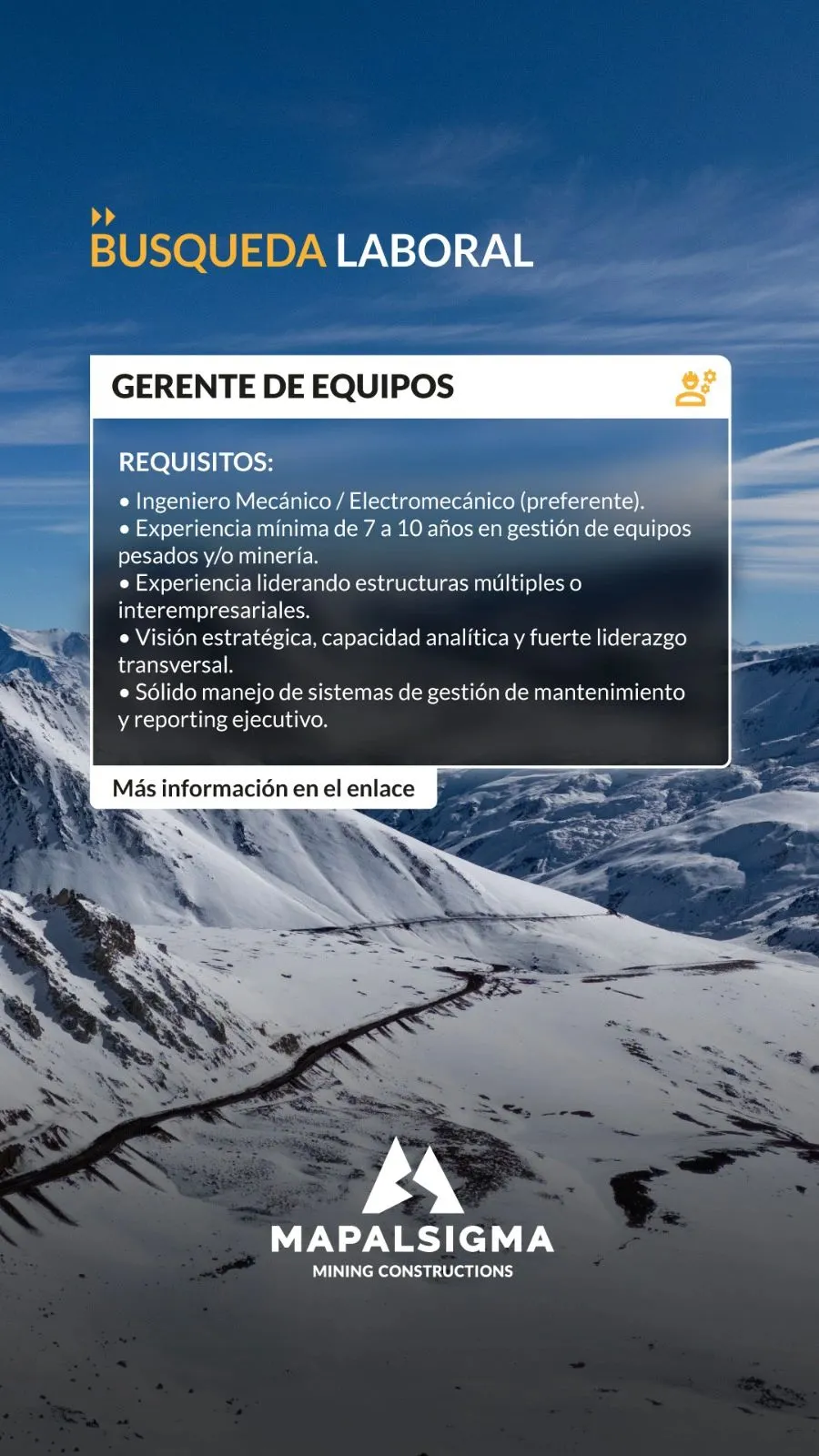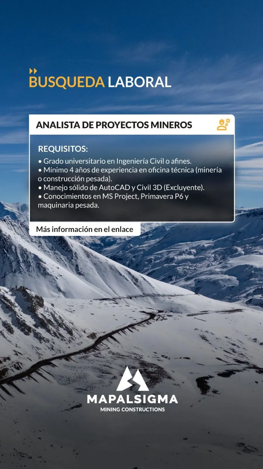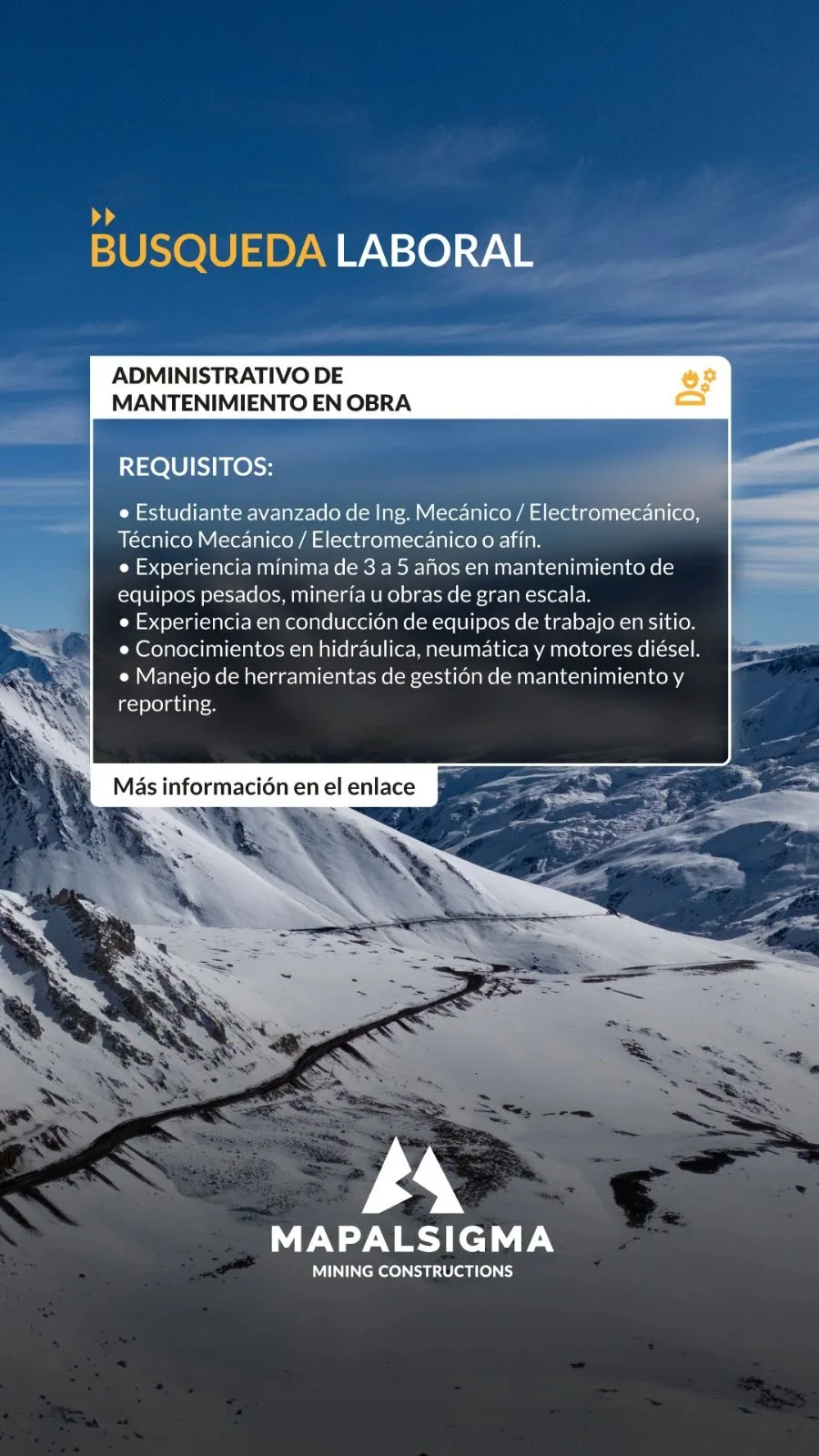 - Supervisor Construcción de Caminos de Montaña en Minería https://lnkd.in/dHXb2Q9u