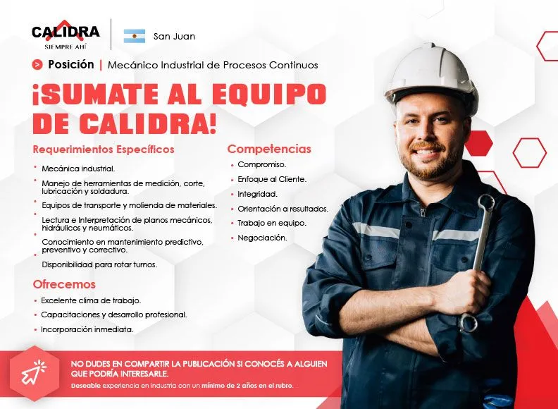 Calidra – Ingenieros Industriales y/o Ingenieros Químicos. Cargar perfil en la plataforma: https://lnkd.in/ddPCGVbb