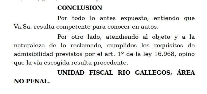 Antes de la resolución judicial, la fiscal federal de Río Gallegos, Sandra Susana Fernández dictaminó que el Juzgado Federal de Río Gallegos era competente para intervenir.