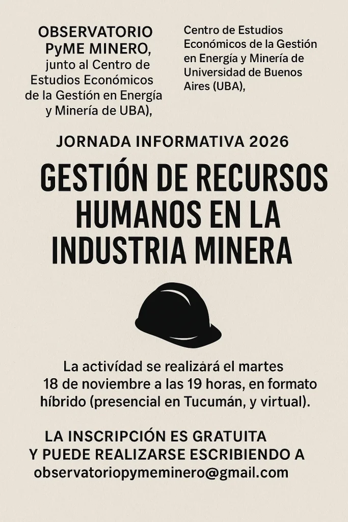 ComunidadJornada 2026 gratuita: Minería argentina, gestión de RRHH, talento y desarrollo humano Redacción Acero y Roca / 14/11/2025